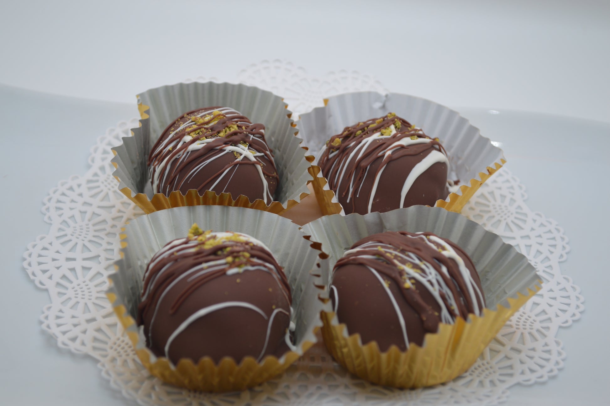 Indulge in the rich, exotic flavors of the Middle East with our handcrafted Dubai Pistachio Chocolate Bombs. These decadent treats are filled with a velvety pistachio-kataifi blend, wrapped in silky smooth milk chocolate, and finished with an elegant drizzle of white and milk chocolate, topped with crushed pistachios for the perfect touch of luxury.